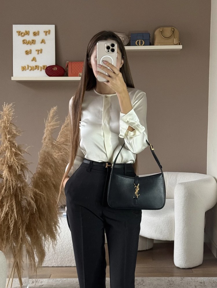 Le 5 à 7 прекрасно сочетается с деловым пиджаком, легким платьем или тренчем, подчеркивая элегантность без показной роскоши. Ее форма повторяет изгибы тела, благодаря чему она выглядит естественно в движении.