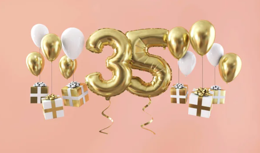 35 років — вік, коли можна носити кросівки й годинник одночасно і вважати себе солідним. Коли друзі дарують шкарпетки, а він ще мріє про дрон, гітару і 2 дні тиші. Привітання має бути з перчиком, з усмішкою і обов’язково з натяком, що далі буде ще веселіше.