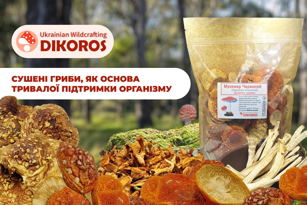 Комплексна підтримка від Дікорос: чага, траметес, лисички та сушені мухомори для вашої продуктивності та спокою